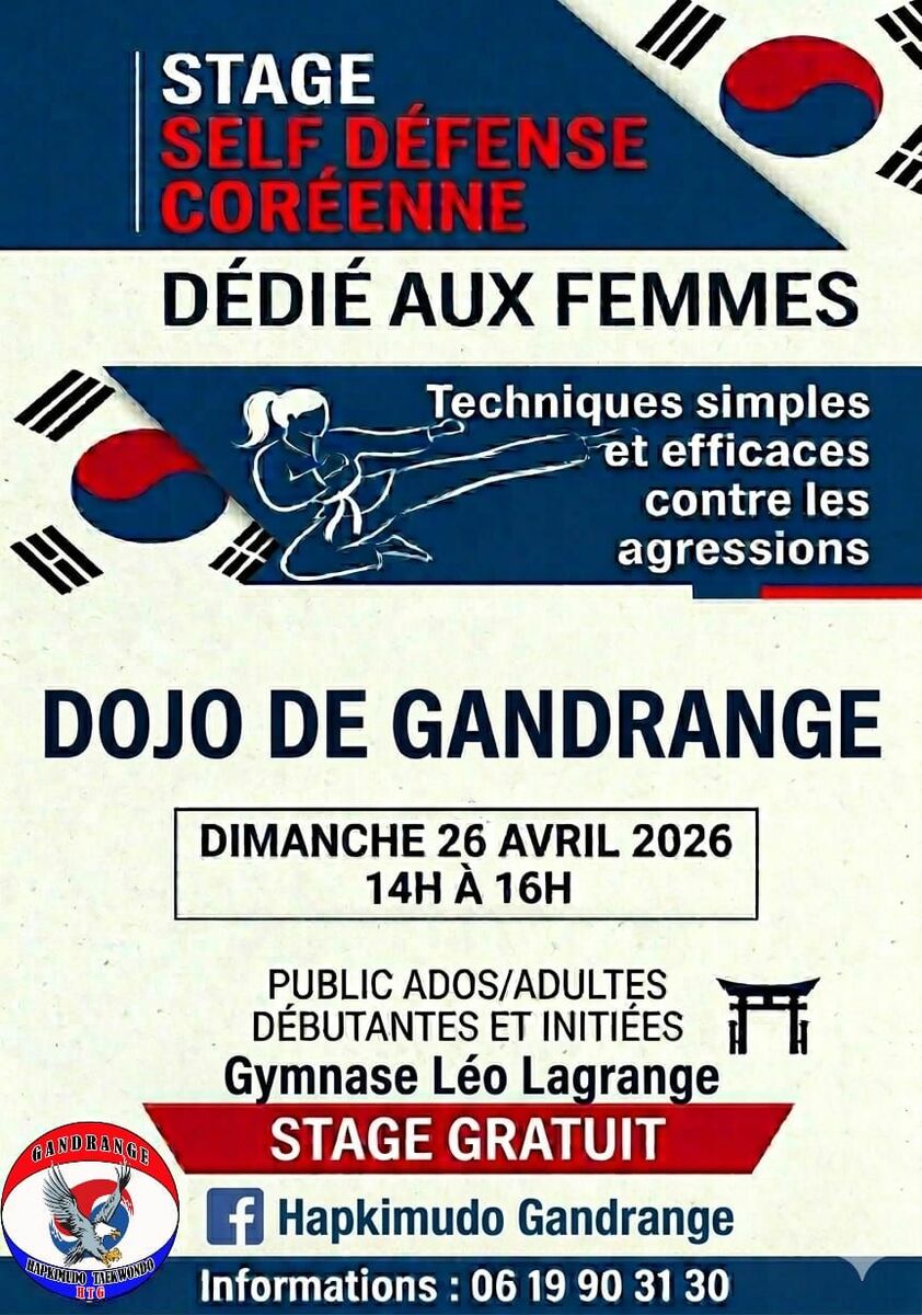 Notre section HAPKIMUDO participera au stage self défense du 26 avril 2026 au dojo de Gandrange (14h /16h)